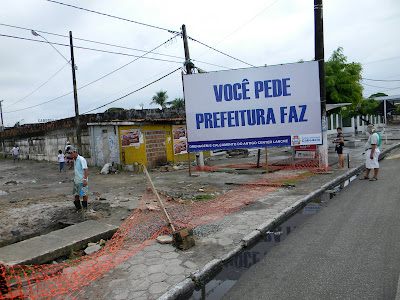 Realmente é uma blasfêmia falar mal dos Gestores públicos, pois pela relevância da obra em que se encontra a placa gigante em letras garrafais, deverá haver uma grande festa para inauguração da “Obra”, a imprensa deverá estar presente para presenciar a entrega do que, sem sombra de duvida, vai modificar o transito no centro da cidade e beneficiar toda a região, pois essa rua é super valorizada, e fica vizinho do Cabedelo Clube.