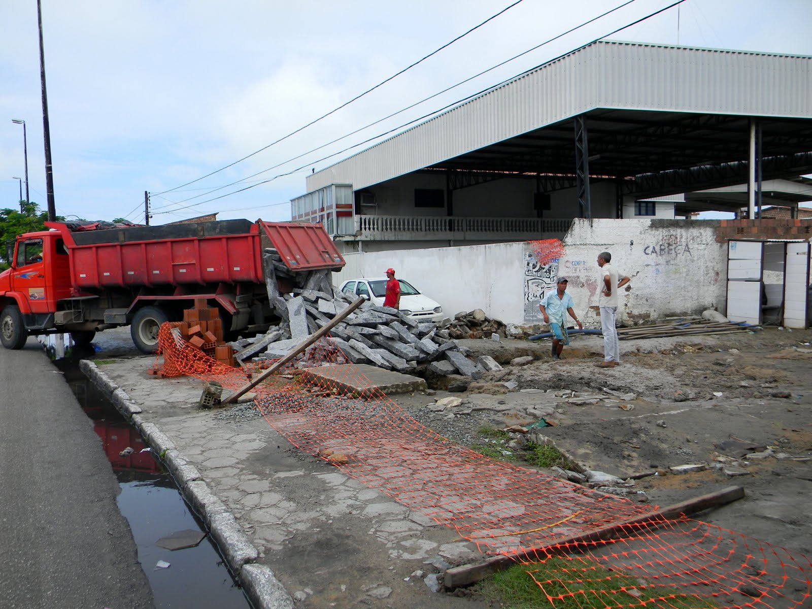O serviço está a todo vapor, muitos trabalhadores, caminhões, máquinas, mangueiras, material de construção, pedras de calçamento, meio fio, tudo esta dentro dos conformes para execução que deve ter um prazo definido para ser concretizada, pois foi uma solicitação da população de Cabedelo e esta sendo atendida com a maior urgência.